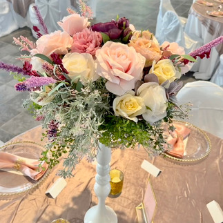 Nestled in the wooded area of Uxbridge, MA, Kara and Saul chose the beautiful "Chapel in the Pines" at Arrowhead Acres to perform their wedding vows at. Kara handmade all the centerpieces herself and perfectly selected each item, right down to Saul's pink tux! The reception took place in the banquet hall directly behind the ceremony site. Legacy Designs assisted with set up, breakdown, and coordination for the couple - keeping the wedding party on task and timeline throughout the day. It was a lovely celebration!